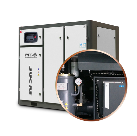 JUCAI螺桿空壓機(jī)主機(jī),大轉(zhuǎn)子低轉(zhuǎn)速設(shè)計(jì),采用先進(jìn)的螺旋齒型技術(shù),瑞典原裝進(jìn)口SKF圓錐滾柱軸承,噪音低,能耗低。