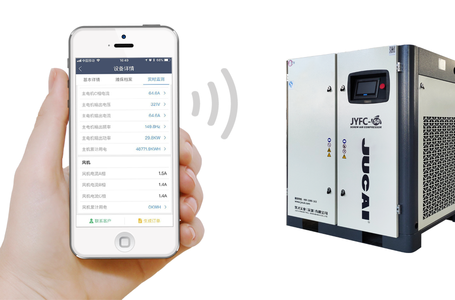 通過物聯(lián)網(wǎng)技術(shù)對空壓機設(shè)備進行全生命周期管理,遠程檢測,遠程管理,手機預警,數(shù)據(jù)采集等。