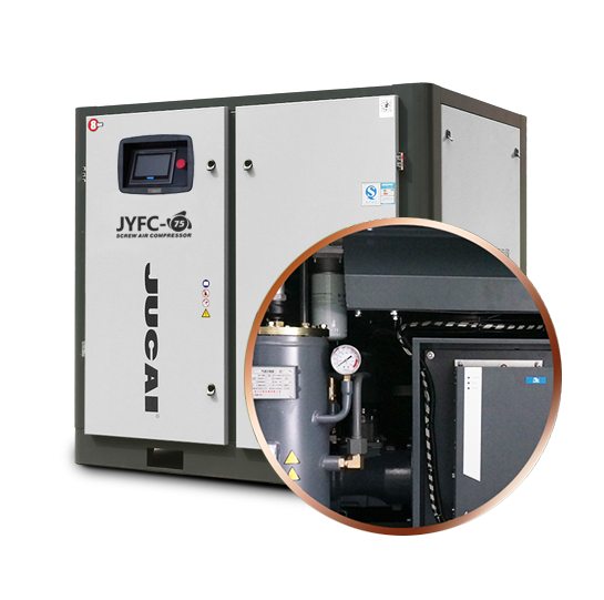 JUCAI螺桿空壓機(jī)主機(jī),大轉(zhuǎn)子低轉(zhuǎn)速設(shè)計(jì),采用先進(jìn)的螺旋齒型技術(shù),瑞典原裝進(jìn)口SKF圓錐滾柱軸承,噪音低,能耗低。